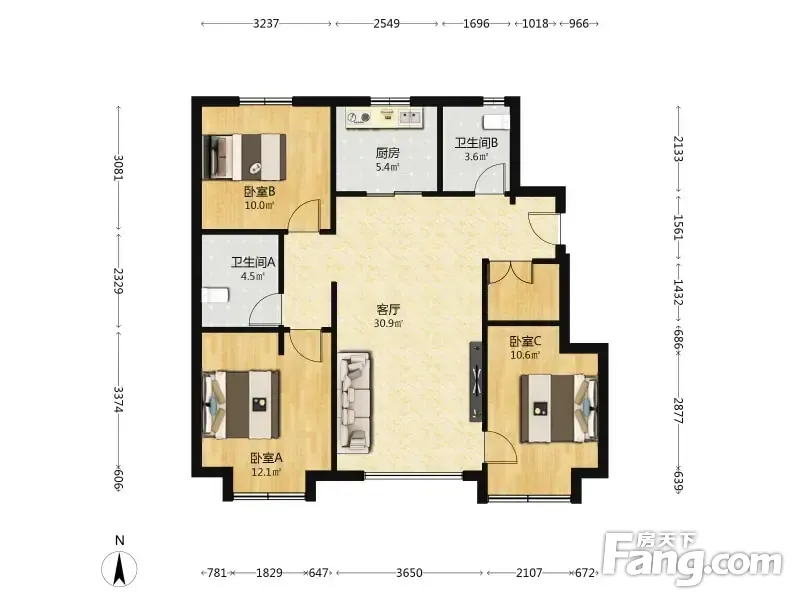 户型齐全,主打南北通透,全明格局三居