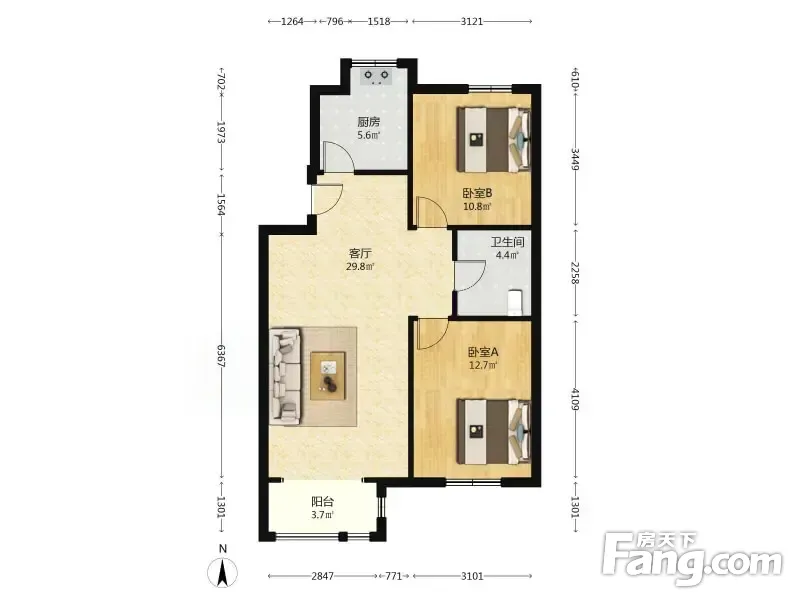 户型齐全,主打明厨,主卧朝南二居