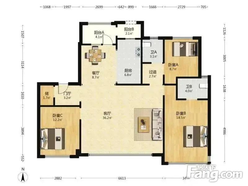 户型齐全,主打南北通透,全明格局三居