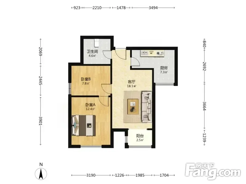 季景家园 2室1厅 75.93平