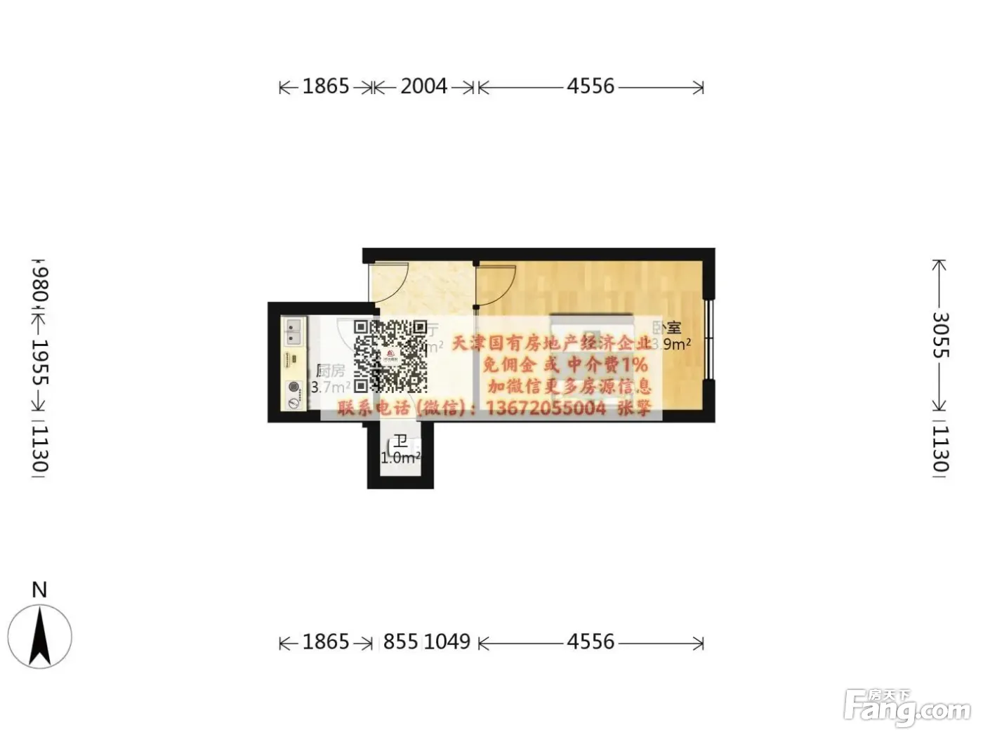 河北一片 海河天津之眼 1楼一室(国企公司免/佣免/税房)