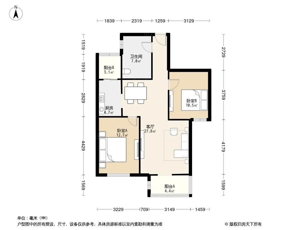 户型齐全,主打户型方正,明厨,客厅朝南,主卧朝南三居