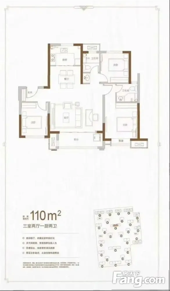 红星城市广场户型主要有88平-114平的南北通透,三开间朝南,主卧带卫的三居 、77平-77平的户型方正,明卫的二居 。