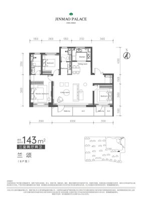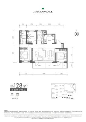 体北金茂府户型主要有128平-169平的南北通透,全明格局的三居 、189平-190平的南北通透,全明格局的四居 。