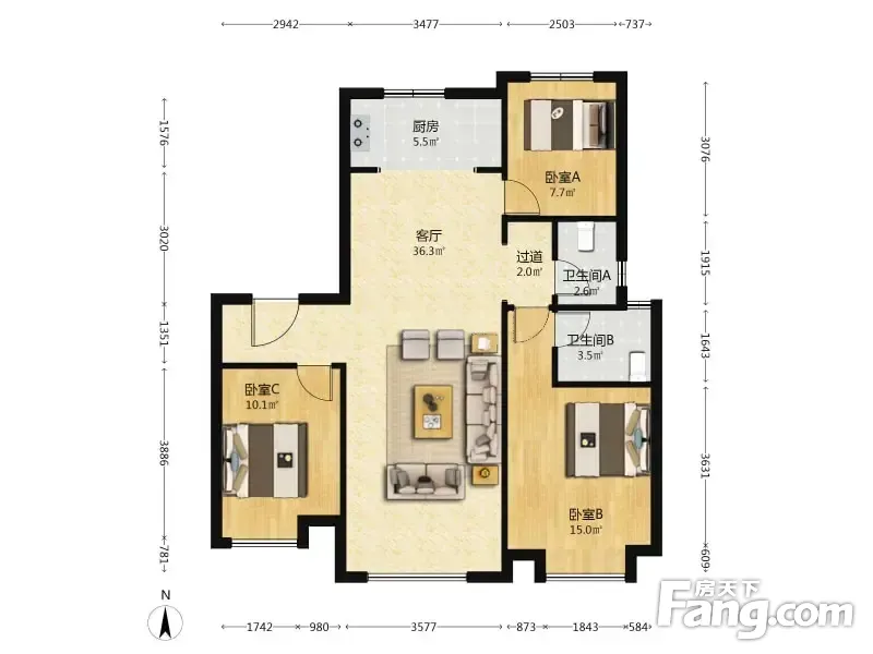 3室2厅1卫