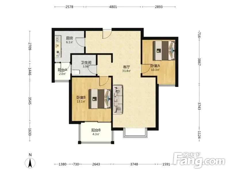 阳光星期八昕旺北苑 102平 2居 南向简装修 自住保养好