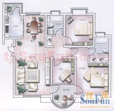 房屋拥有相对宽松的尺寸,布局通透,动静分离,设计豪华