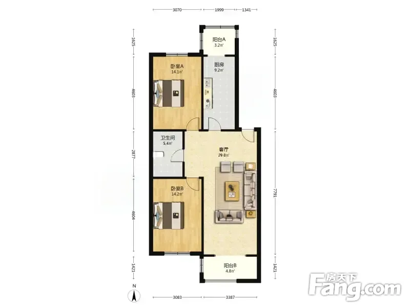 户型齐全,主打户型方正,明厨二居