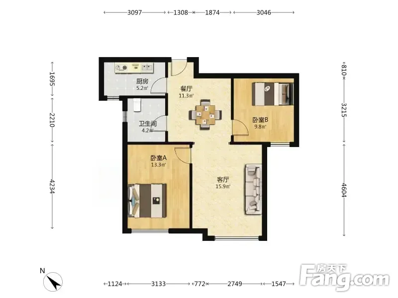 雅仕兰庭 2室1厅 85.52平