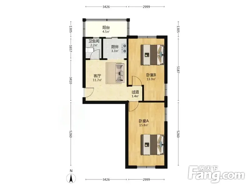晨阳小区 2室1厅 67.42平