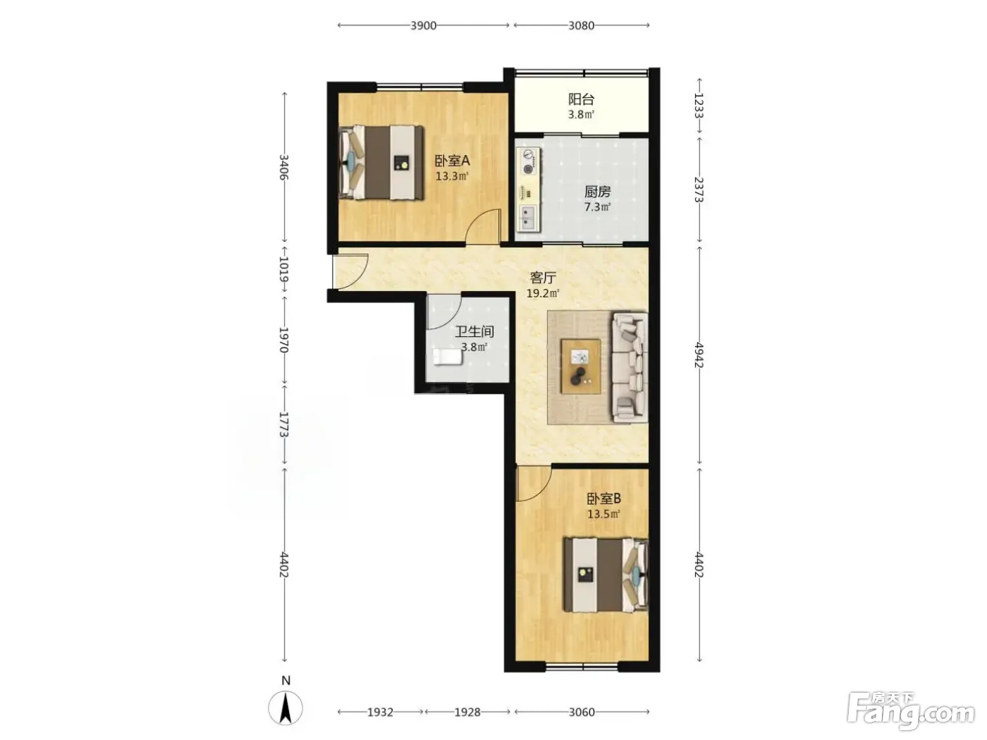 户型齐全,主打户型方正,客厅朝南,主卧朝南二居