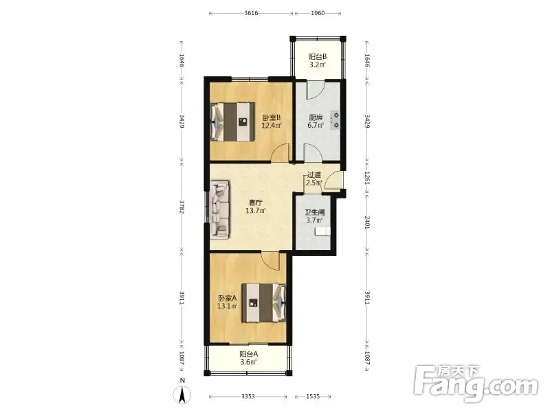 东海花园 2室1厅 77.74平