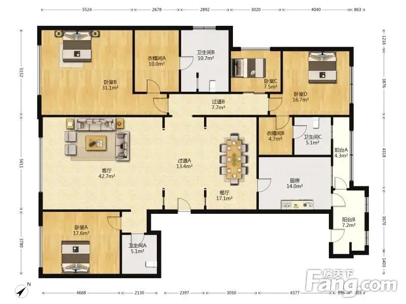 户型齐全,主打独立衣帽间,明卫,客厅朝南,双阳台四居