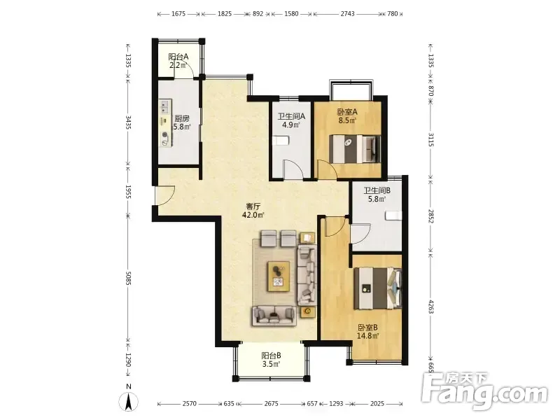 户型齐全,主打客厅朝南,双卧朝南二居
