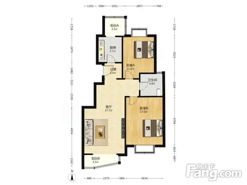 户型齐全,主打户型方正,明卫,客厅朝南,双卧朝南,主卧朝南二居