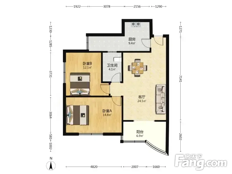 户型齐全,主打明厨,客厅朝南,主卧朝南二居