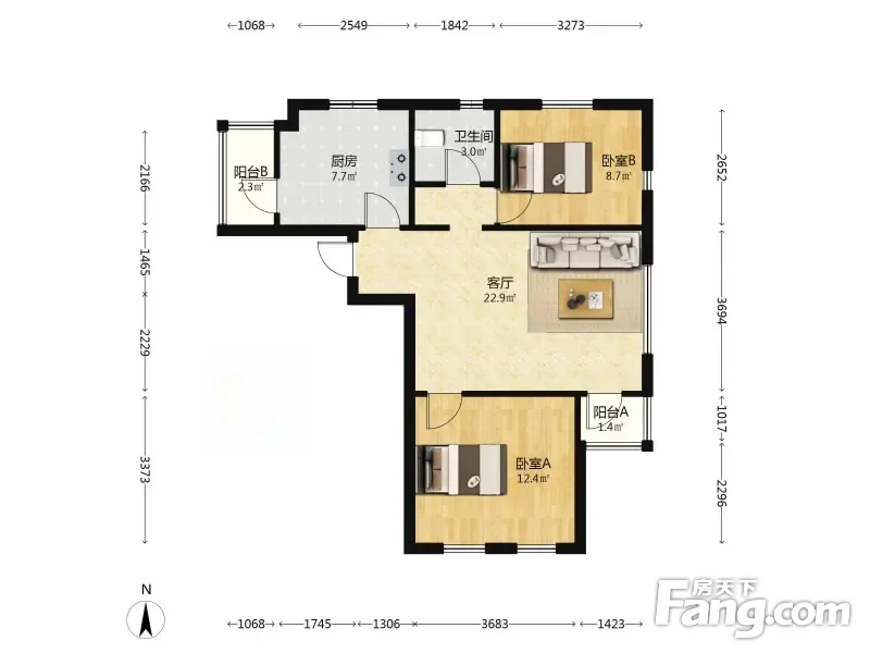 金德园 2室1厅 88.57平