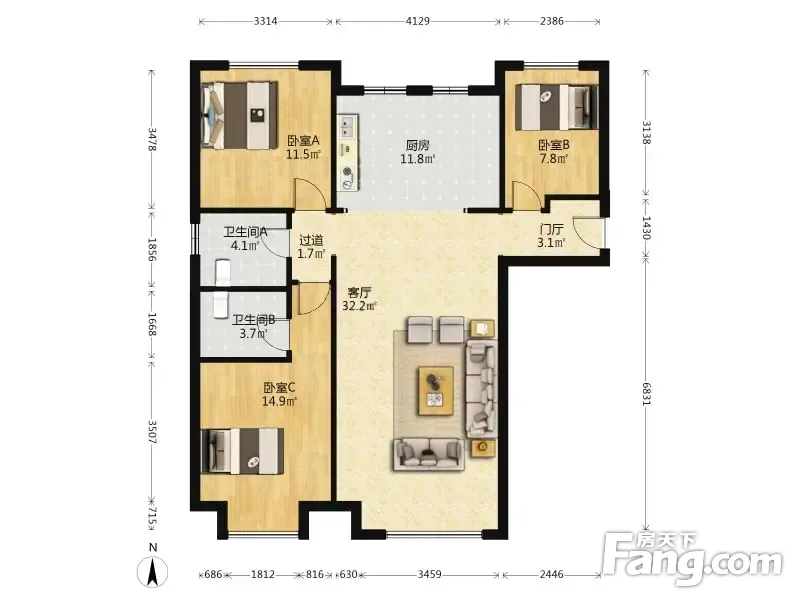 3室1厅2卫