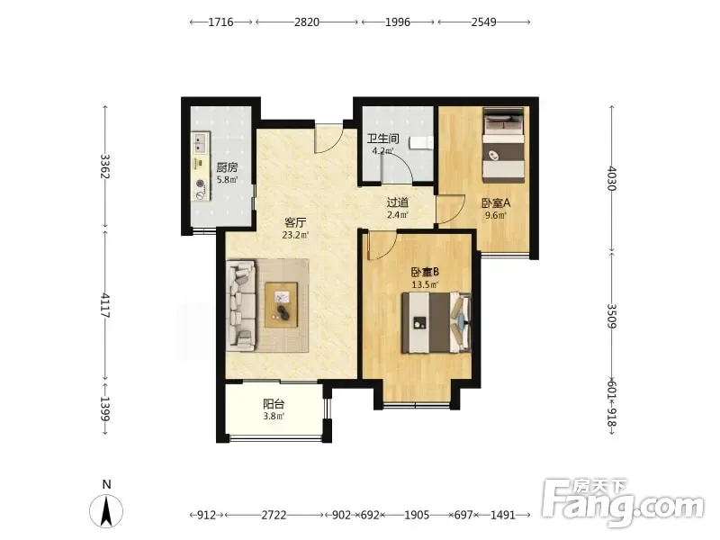 户型齐全,主打户型方正,明厨,双卧朝南,主卧朝南二居