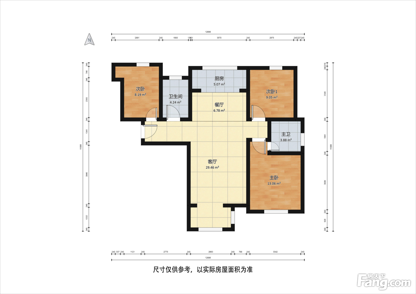 南北通透三室两厅两卫 户型好 没浪费面积