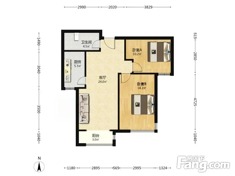 万科金色雅筑南苑 2室1厅 88.26平