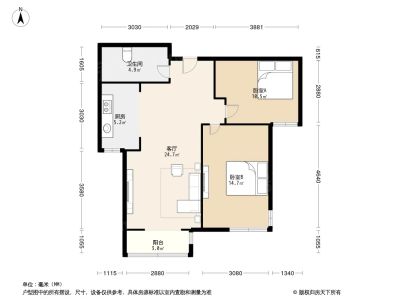 万科金色雅筑南苑 2室1厅 88.26平