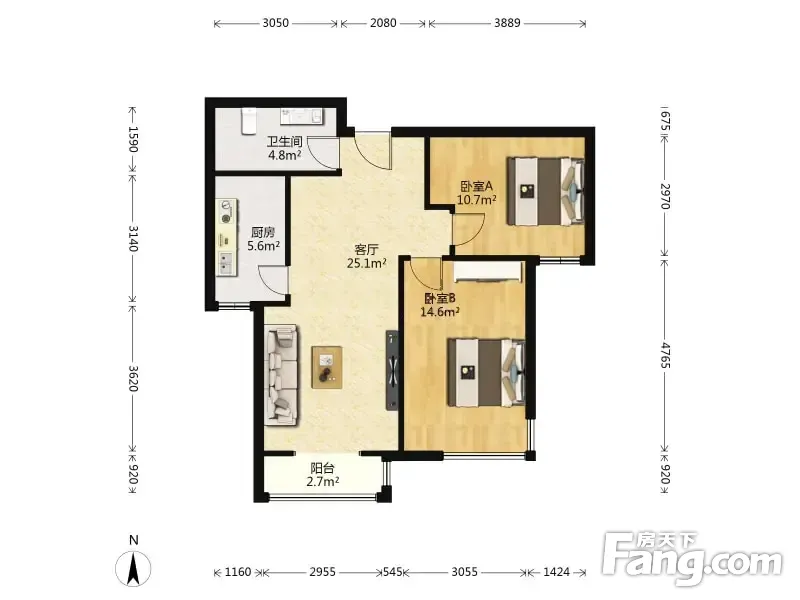 万科金色雅筑南苑 2室1厅 88.37平