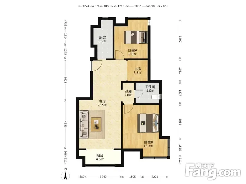 金隅悦城嘉悦园 2室1厅 93.4平