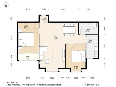 昆俞欣园 2室1厅 93.44平
