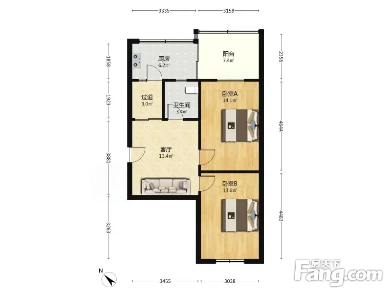 团结东里 2室1厅 61.52平