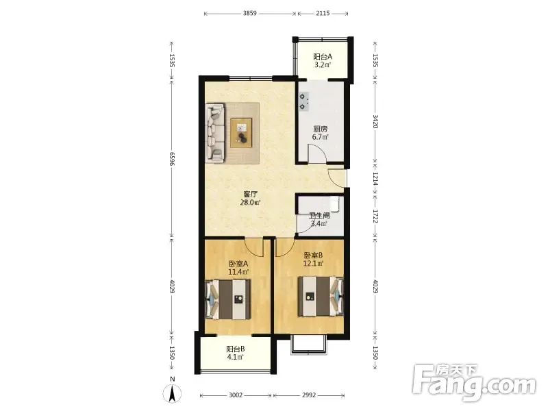 紫瑞园 2室1厅 86.36平