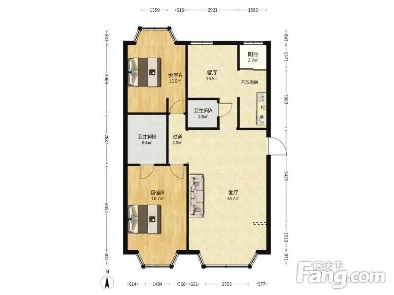 户型齐全,主打客厅朝南,主卧朝南,独立衣帽间三居