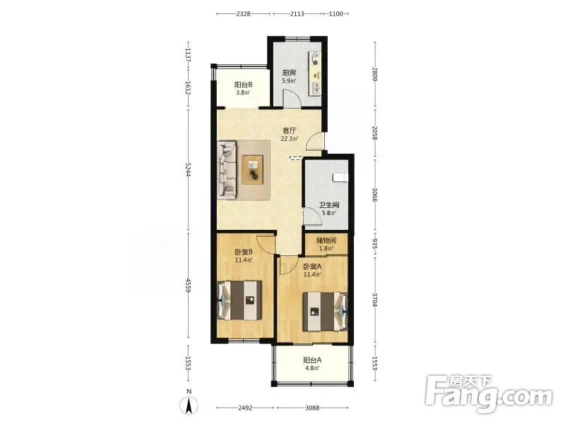 长华里 2室1厅 82.86平