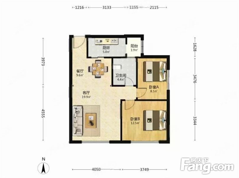 户型齐全,主打明厨,客厅朝南,主卧朝南二居