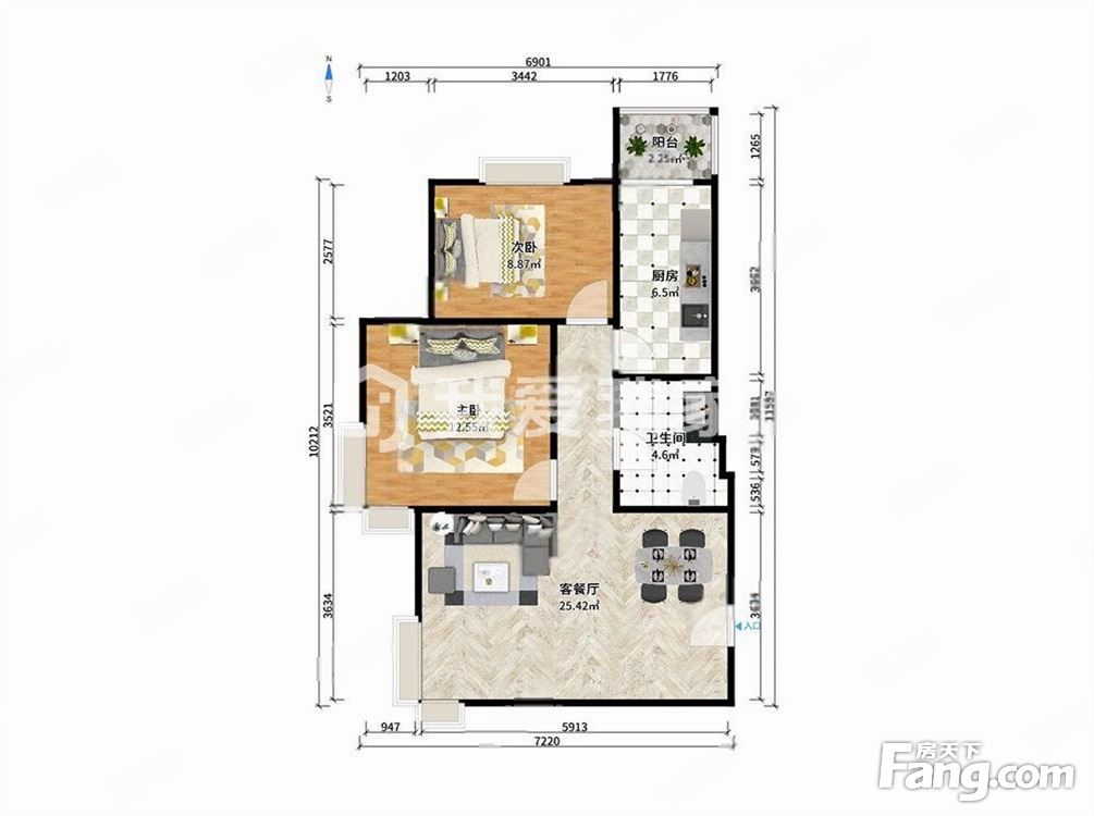 户型齐全,主打明卫,双阳台二居