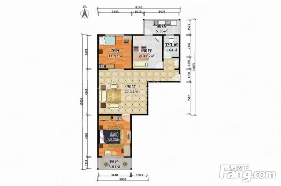户型齐全,主打明卫,明厨,客厅朝南,双阳台二居