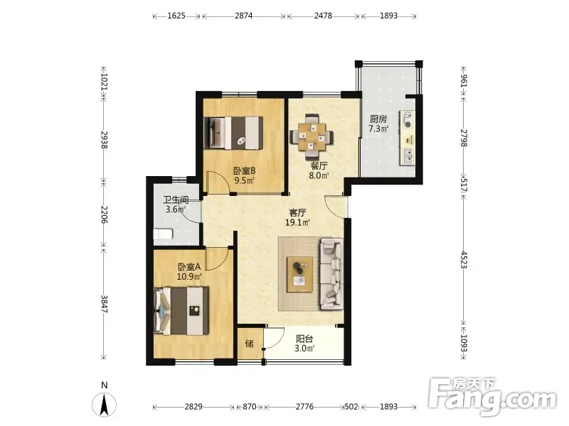 户型齐全,主打明卫,客厅朝南,主卧朝南二居