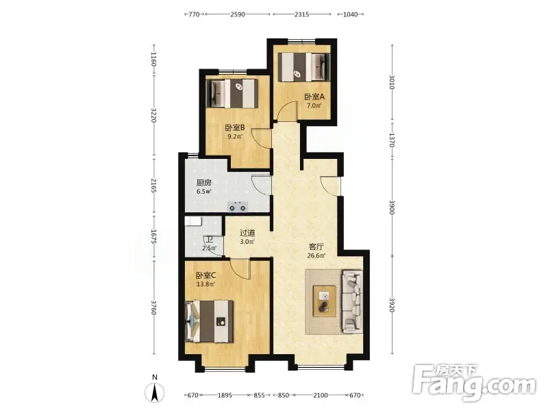 3室2厅1卫