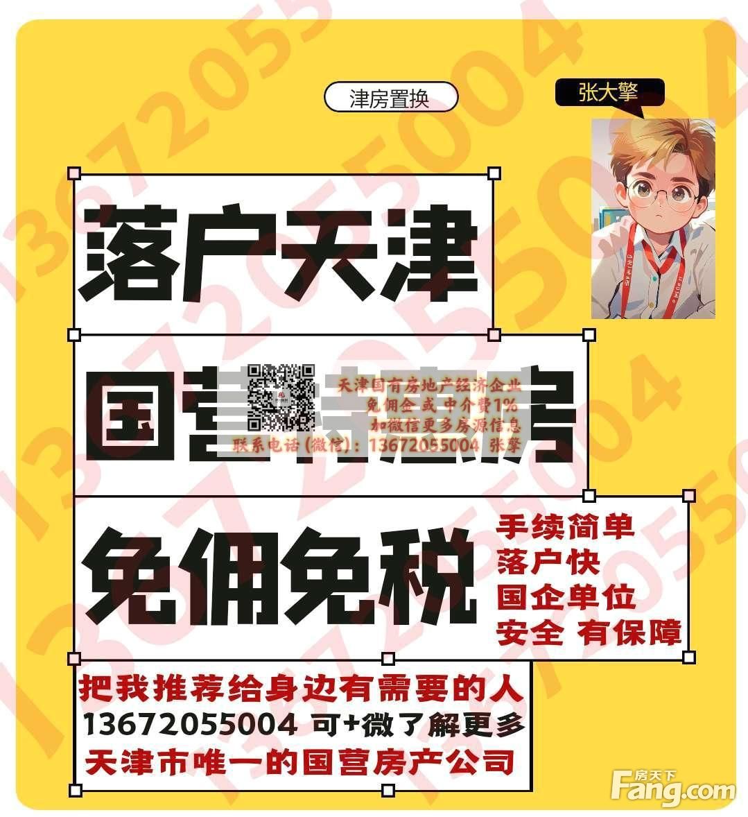 天津市氵聿房置换有限责任公司 国有房经纪企业 置业经理 张擎:①③⑥⑦②零⑤⑤零零④(可+微) 中阶費 1% 或 不收取中阶費用
