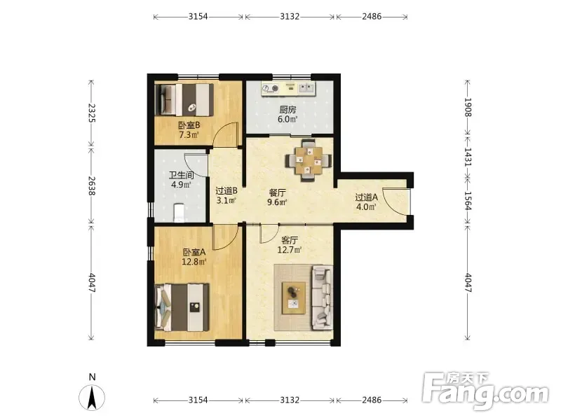 户型齐全,主打户型方正,明厨,客厅朝南,双卧朝南二居