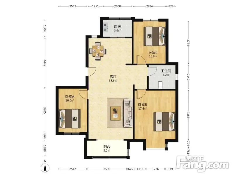北岸尚城 3室1厅 118.09平