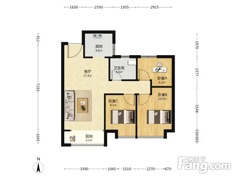 3室2厅1卫
