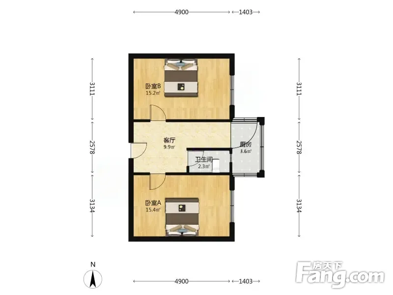 冠云东里 2室1厅 39.18平