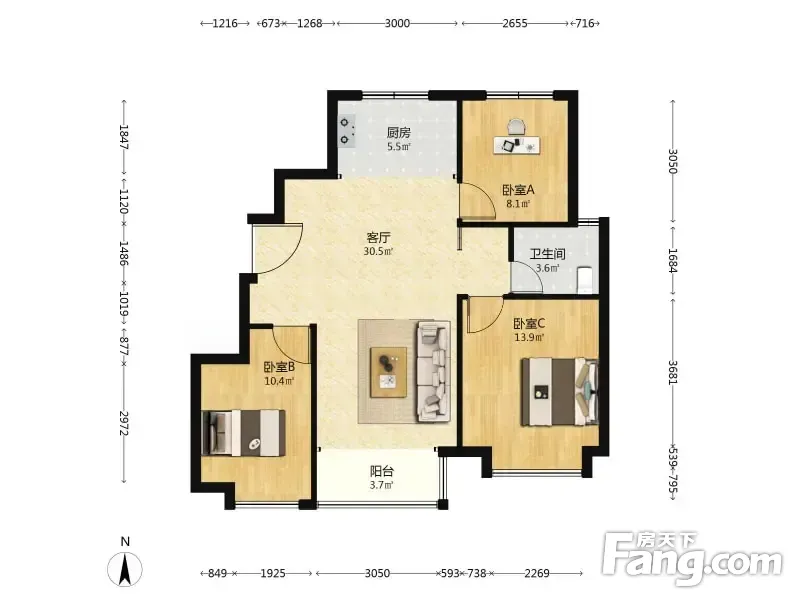 3室2厅1卫