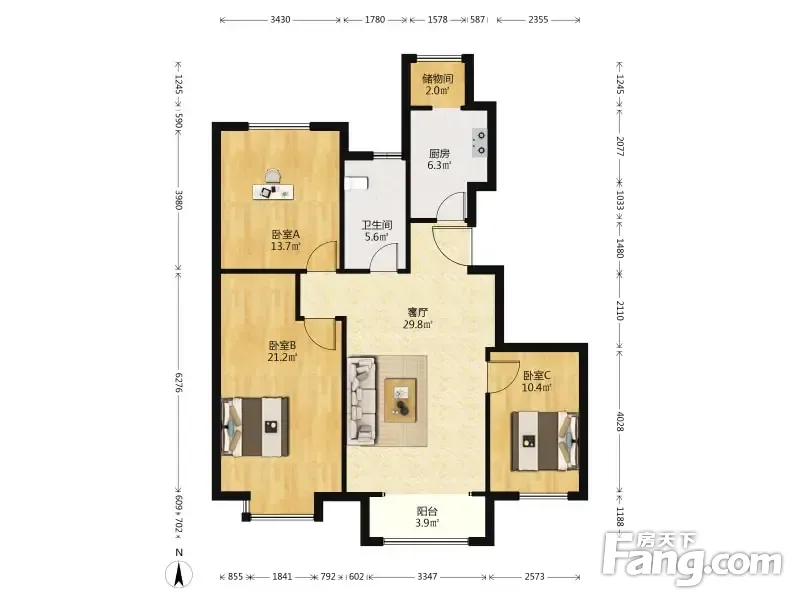 3室2厅1卫