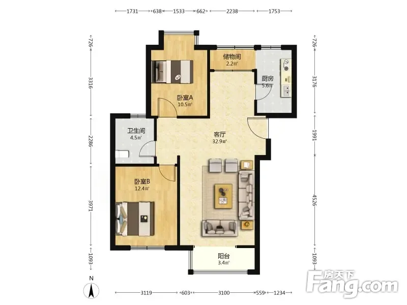 名居花园 2室1厅 96.42平