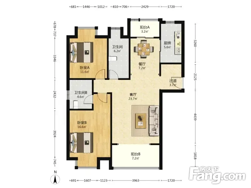 户型齐全,主打户型方正,明厨,明卫,主卧朝南二居