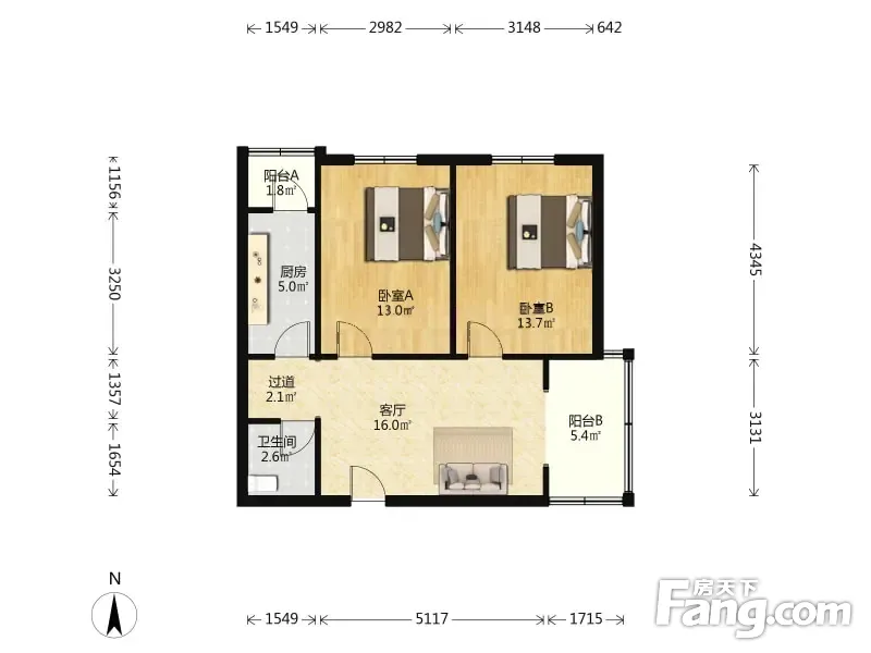 龙都花园 2室1厅 82.67平