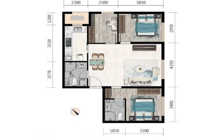 户型齐全,主打动静分离,采光充足二居