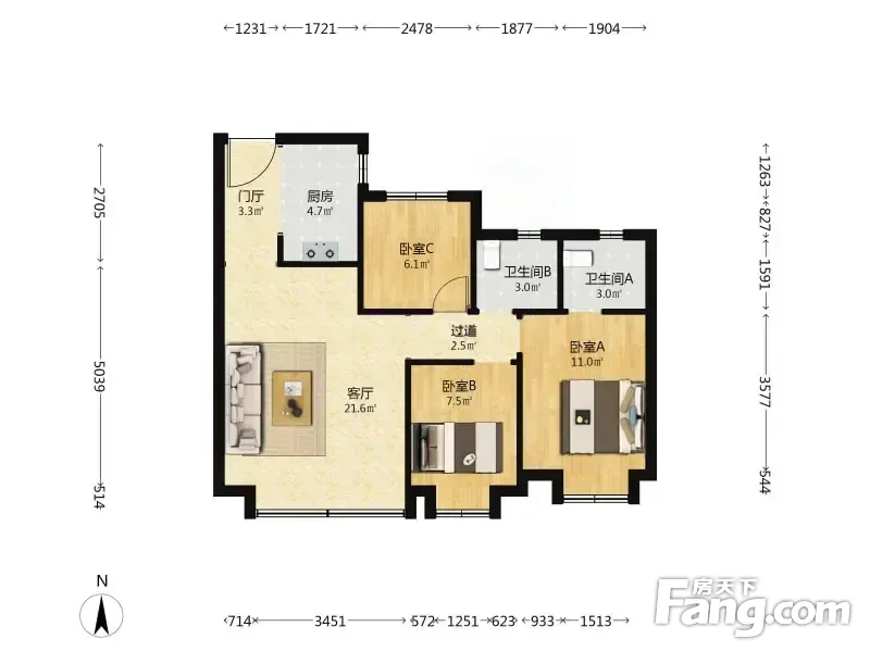 3室2厅1卫